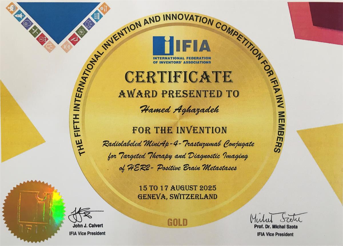 M5) GOLD Medal of the 5rd International Competition of Inventions and Innovations (IFIA) in Geneva, Switzerland (August 2025)