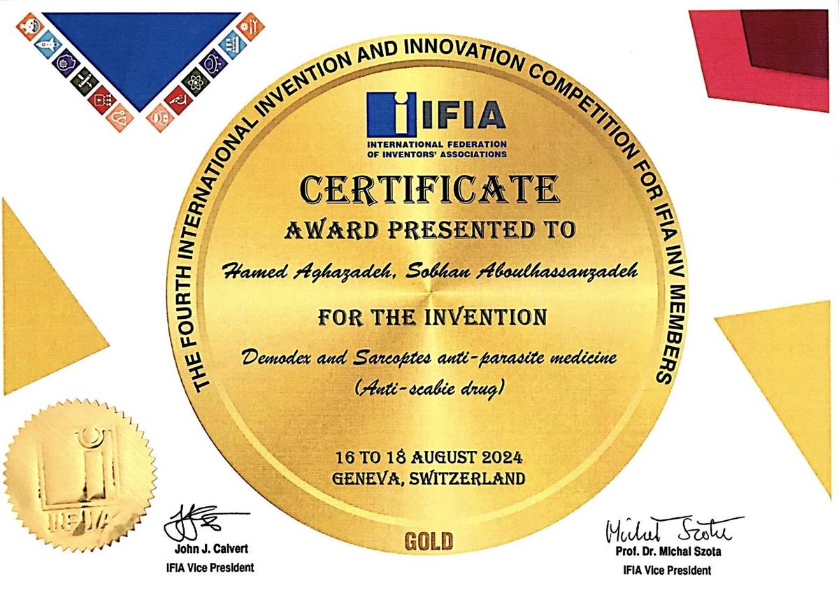 H3) Obtaining the approval of Iran's National Elite Foundation for the invention of Manufacturing an antiparasitic drug against Demodex and Sarcoptes (anti-scab drug)