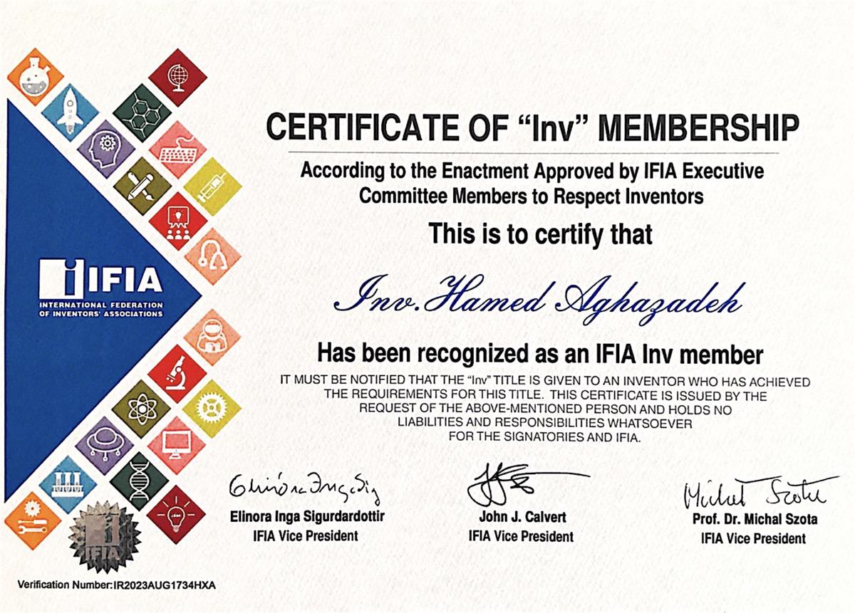 - IFIA Inv-Member (International Federation of Inventors Associations Member; Verification Number ID: IR2023AUG1734HXA)